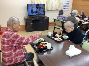 新年を迎え、皆様におせち料理を召し上がっていただきました。