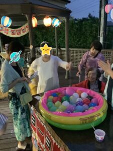 2025-09-06日常のこと 納涼祭 その2 ‐ヨーヨー釣り こんにちは~。 前回に引き続きクローバーホーム成田の 納涼祭の様子をご紹介します。今回はヨーヨー釣りです。 皆様、童心に帰って楽しんで頂けたようです😃 スタッフブログ一覧に戻る